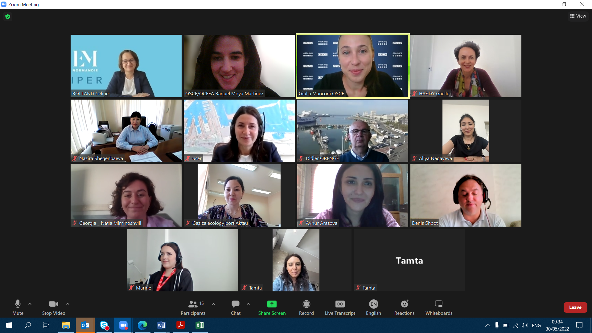 Participants of the first meeting of the OSCE-IPER Women in Port Management training course, online, 30 May 2022.