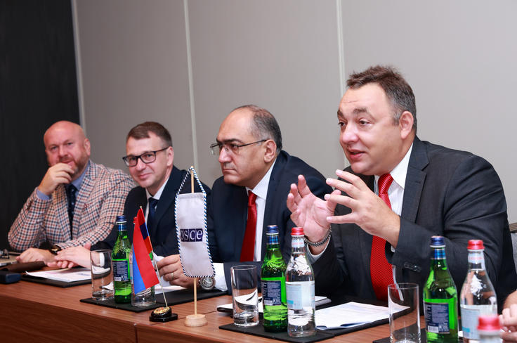 Speakers at the training on the effective investigation of corruption organized by the OSCE’s Office of the Co-ordinator of Economic and Environmental and the newly established Anti-Corruption Committee of Armenia. Yerevan, 12 August 2022.