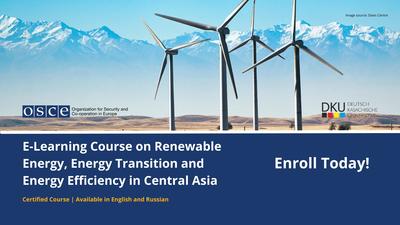 Central Asia, with its untapped renewable energy potential, can make a major contribution to the green energy revolution. To meet this potential, Central Asian countries have prioritized the need to invest in an enabled workforce. Against this background, the OSCE has launched an E-learning course "Renewable Energy, Energy Transition, and Energy Efficiency in Central Asia" in partnership with the Kazakh-German University (DKU).