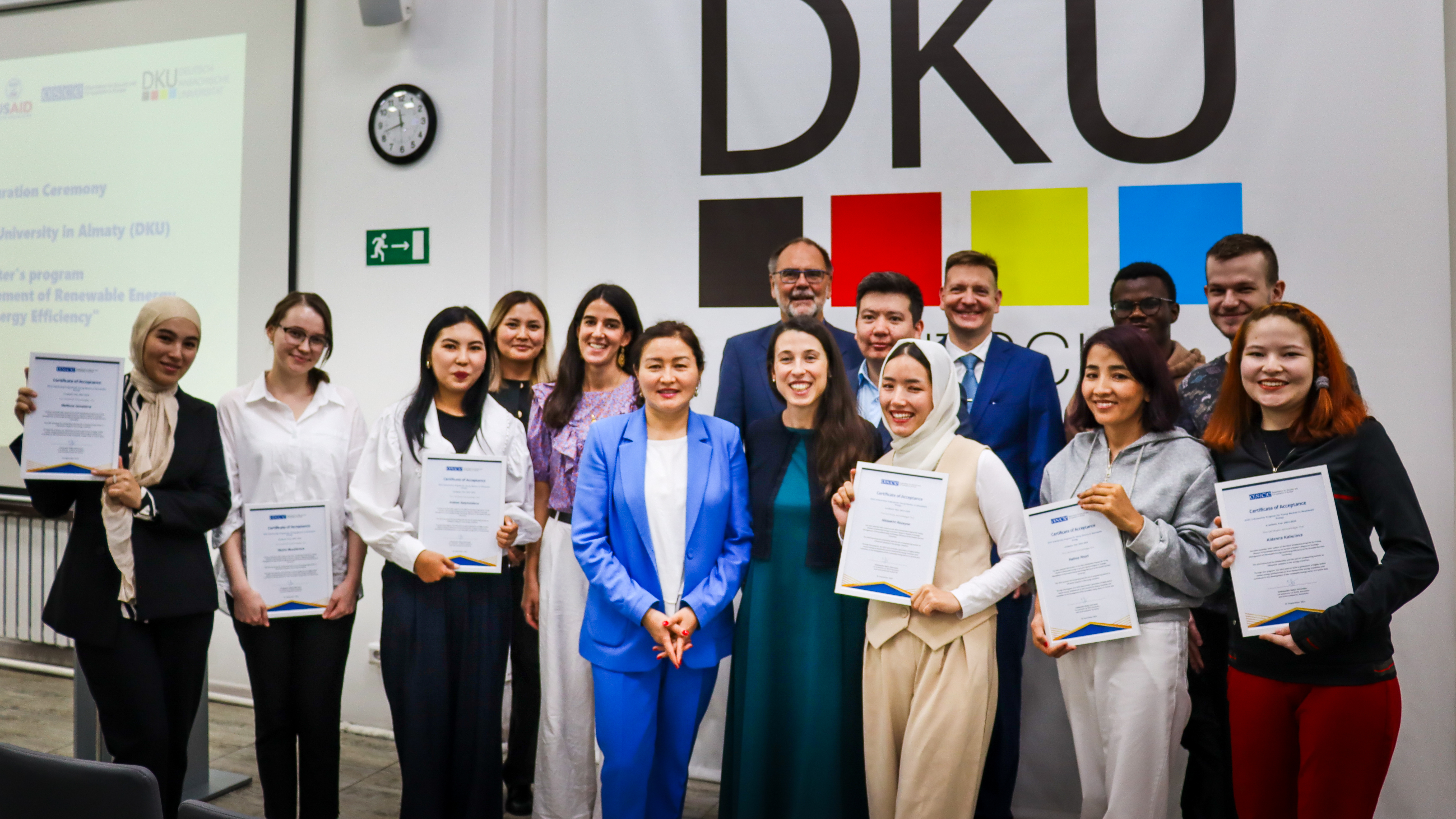 Participants of the second edition of the OSCE Scholarship Master’s Program for Young Women in Renewable Energy at the Kazakh-German University (DKU) in Almaty, Kazakhstan