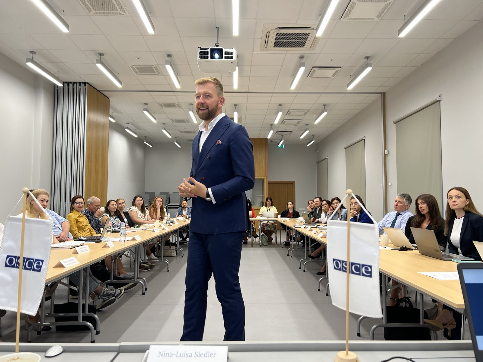 Michal Gromek, lead OSCE expert on virtual assets, speaking at a workshop on "Navigating the Virtual Asset Landscape"