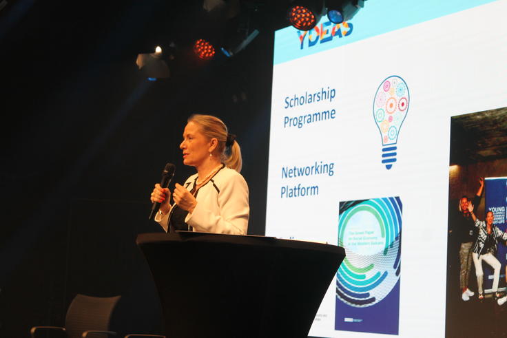 Vera Strobachova-Budway, Senior Economic Officer and Head of the Economic Governance Unit at the OSCE, speaking at the European Young Innovator’s festival.